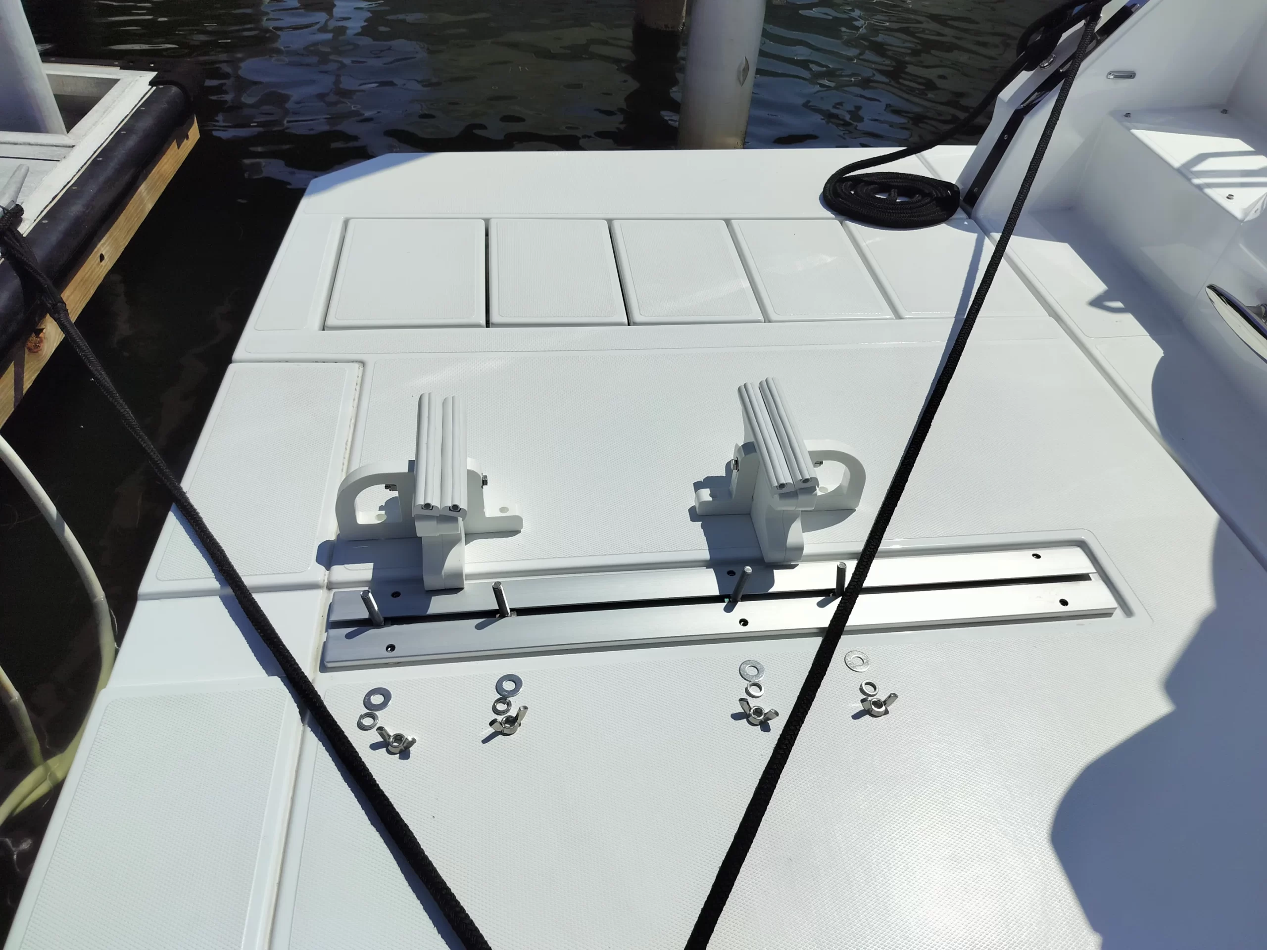 VersaChock channel chocks are removable, super compact and universal. Perfect for securing rigid hull tenders, dinghies, and jet skis on swim platforms with channels. Kits come with eight ½” stainless steel carriage bolts that are inserted into swim platform channels (channels are existing/not sold by VersaChock). Double wide bunks are made with high quality HDPE and semi-rigid hull cushioning strips. Remove chocks when not in use for a TRIP FREE deck!