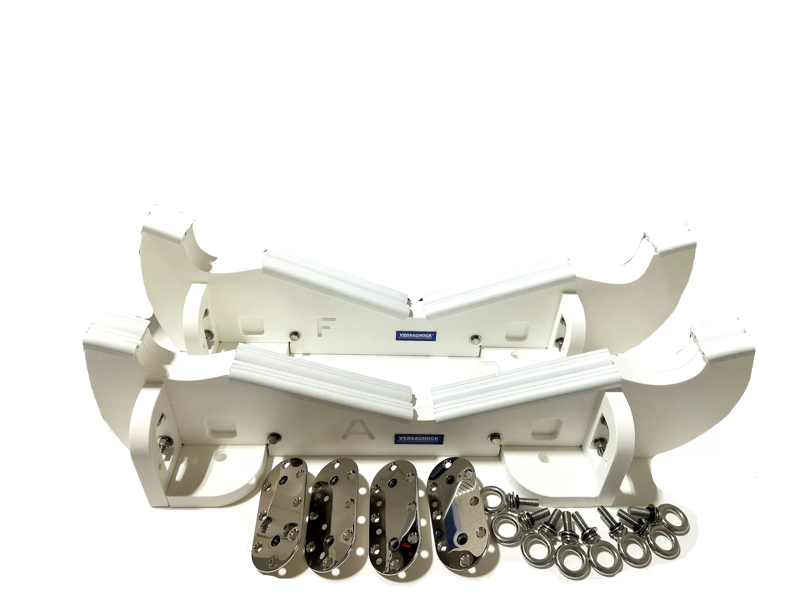 VersaChock heavy duty custom tender chocks are custom made to fit the exact shape of hull (drawings are usually available from most OEM manufacturers or we can assist in getting templates). Made to order with the super quick turnaround time! Chocks are made of high-quality HDPE plastic and stainless-steel hardware that will stand up to the harsh marine environment for many years. Mechanically attached hull cushioning strips help protect the hull. Chocks are installed with 4 oval threaded deck plates and ½” eyebolts, allowing the chocks to be removed in seconds without the use of any tools for a TRIP FREE deck! Also works great with VersaChock’s exclusive blind fastener system (VCBLINDWIDE35) when access to backside of mounting surface or a second set of hands is not possible. Template drawings can be sent prior to fabrication to check accuracy. Tie downs required (not included). ¼” screws required for installation (not included).